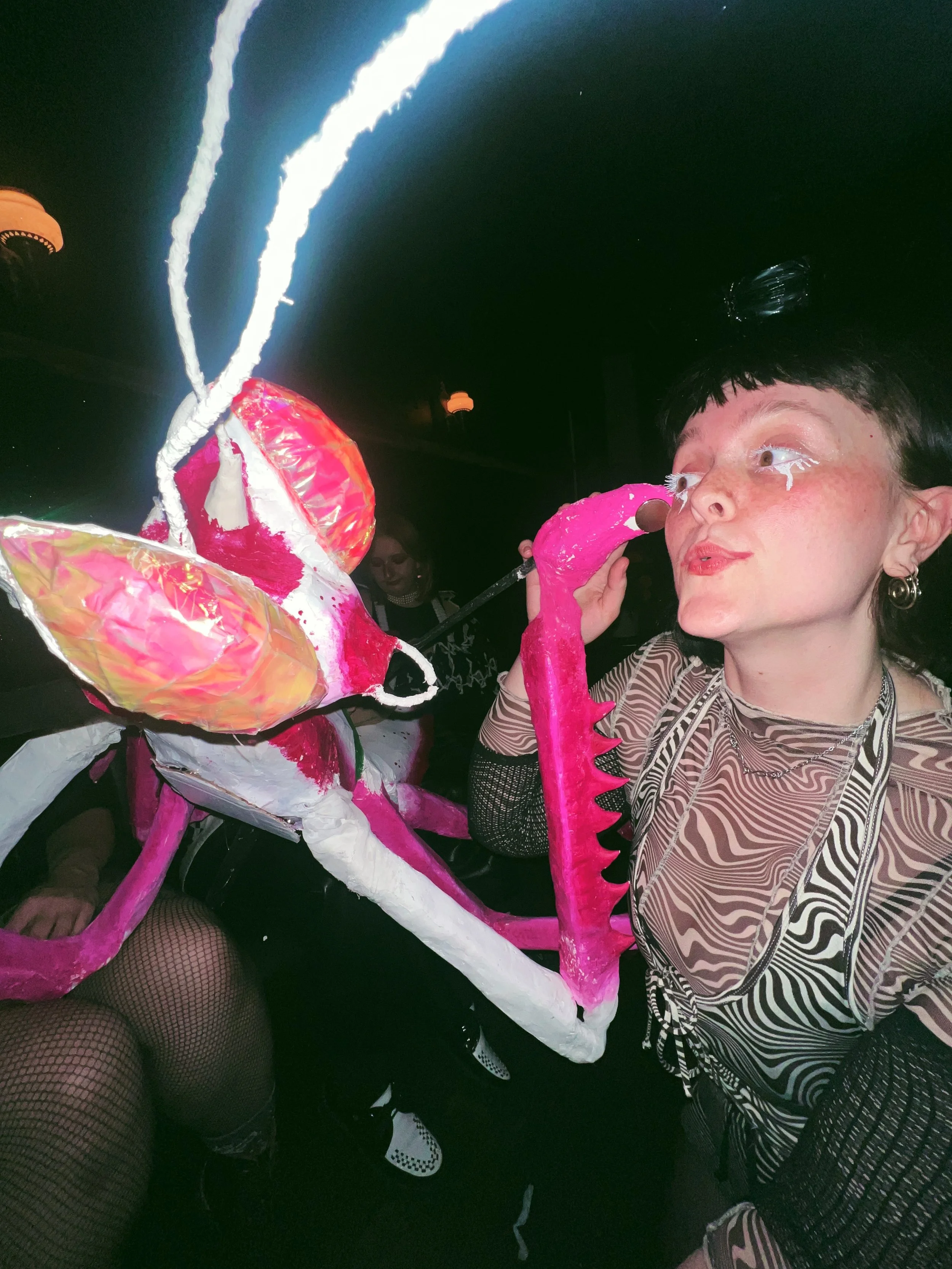 Currently my energies are being poured into Hymen Opus, a reworking of one of the first puppet shows I made. It’s a sapphic vampire spectacle with orchid mantises as the main players. Through this work I am exploring my own sexual identity, specifically through the lens of my childhood. Being able to fully explore those feelings and memories without the weight of religious guilt has been incredibly healing. It will be shown on March 22nd, 2026 at the Stone Circle Theatre, and as part of the New Orleans Giant Puppetry Festival this April.