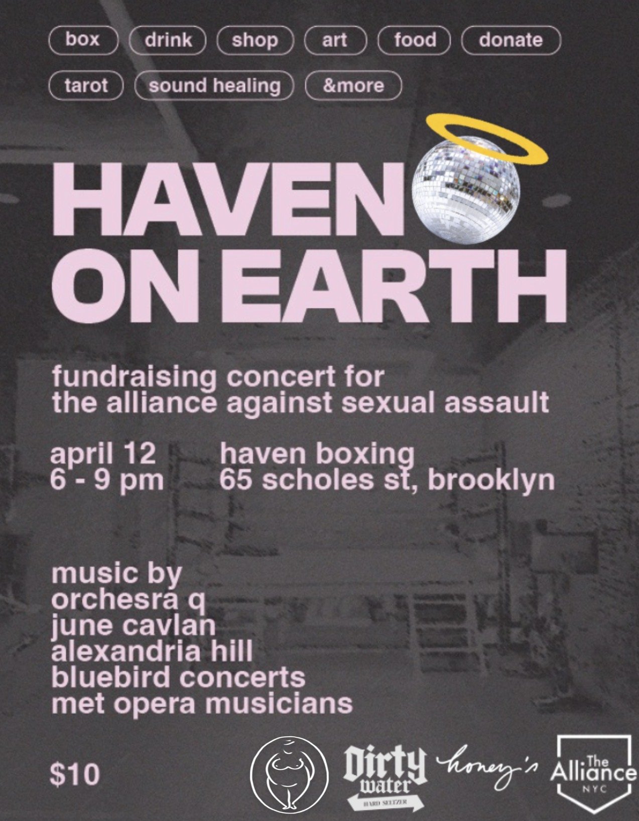 Hey you should come to this fundraiser concert at a women owned boxing gym to raise funds and awareness for The Alliance Against Sexual Assault. We have world renowned musicians playing jazz to pop to classical. It’s not just a concert though, there will be punching bags, self defense instructors, local art for sale, tarot readers, alcohol and more.